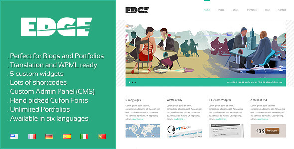Edge is a Wordpress theme designed with corporate businesses in mind. The theme is also well suited for online portfolios and blogs.