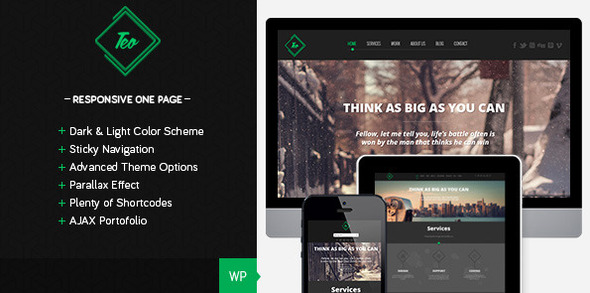 a blog post page for your personal use. Teo is a creative parallax single page theme, thought to be outside the box, using great colors to emphasize what matters most. It is unique among the other single page themes because of its flexibility and the variation of unique elements.